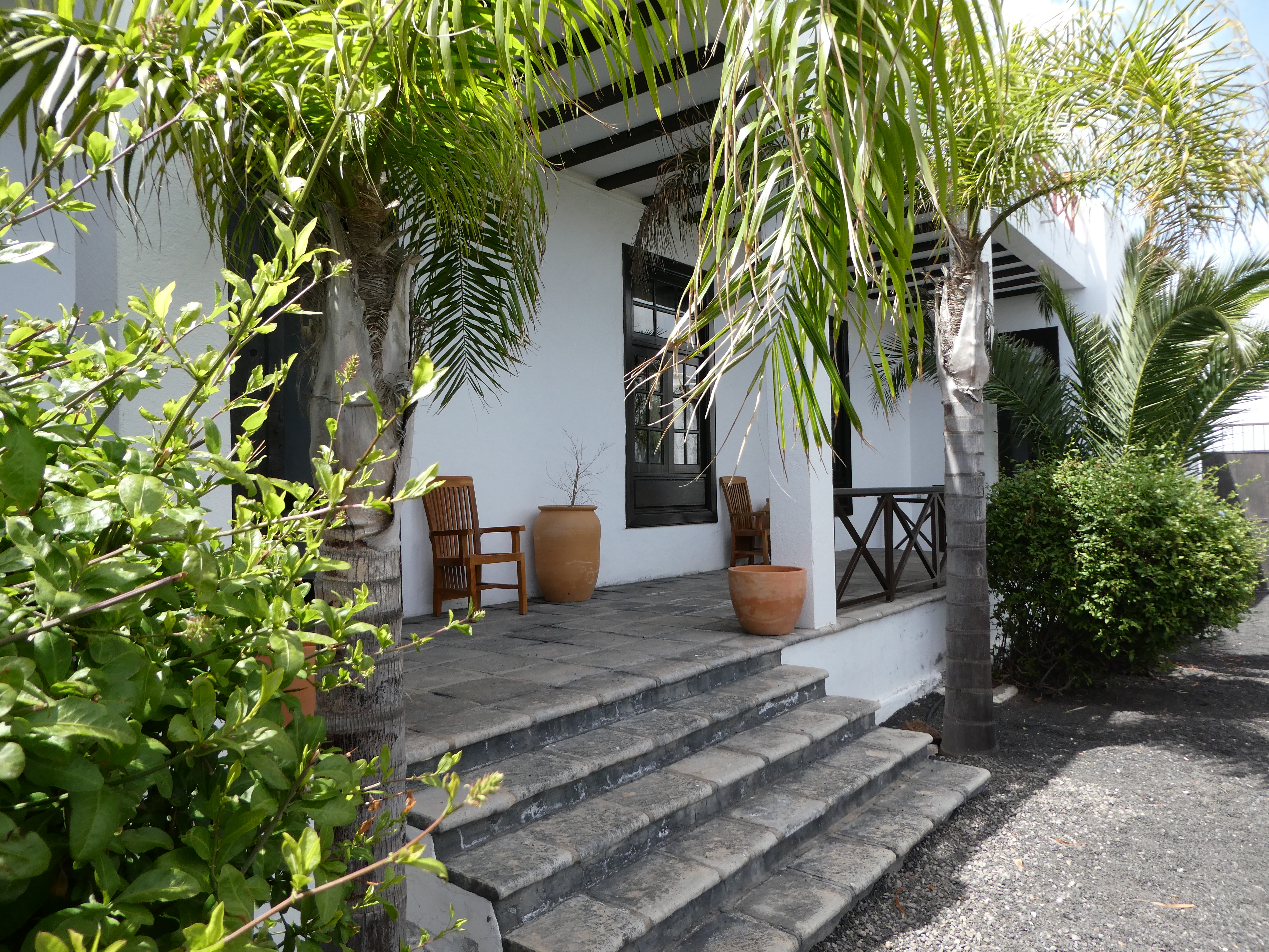 Relájese en el porche con vistas a la finca.